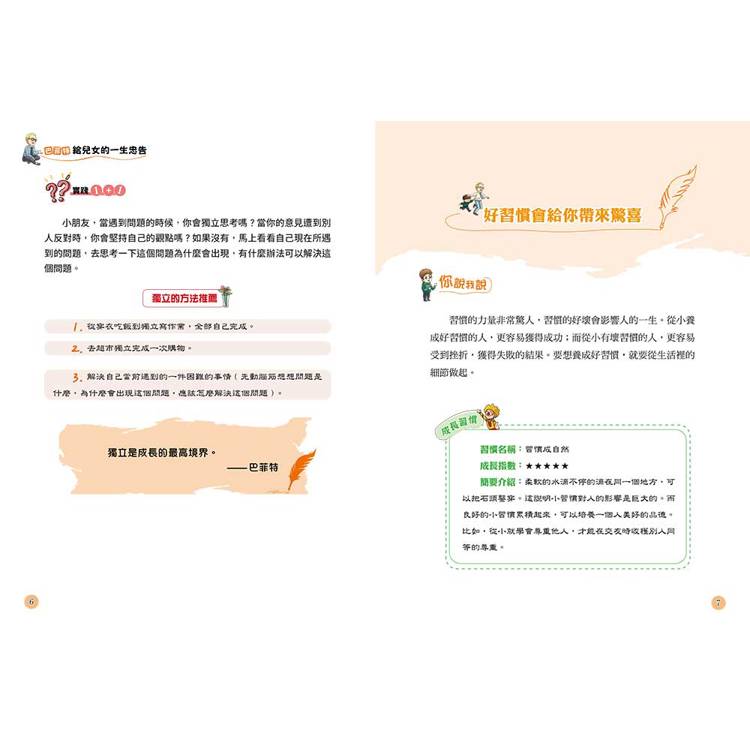 這份財富不是金錢,而是做人做事的智慧。他希望兒女能成為自信、自主、自律的人,找到自己熱愛的方向,活成獨一無二的樣子。這套書正是他教育理念的精華,現在,也能成為陪伴孩子的人生指引。