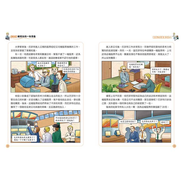 「人生最寶貴的財富是什麼?」巴菲特的答案不是金錢,也不是權力,而是來自長者的忠告。在第一冊裡,你會看到巴菲特如何提醒孩子:要學會獨立,不依賴他人;要樂觀、自信,面對挑戰不輕言放棄;要懂得正直、誠實和感恩,因為這些美德比任何考試分數都更長久。