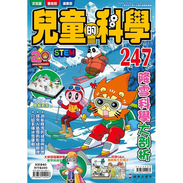 .科學實踐專輯:兒科村冬運會。每到冬天,兒科村都舉辦運動會,展開各種雪上與冰上比賽,只是今年卻遲遲仍未落雪。就在眾人以為運動會無法成事,某天卻發現一種特別的雪鋪滿整個村子,於是他們一探究竟。期間他們剖析降雪的成因與影響,也探究人造雪的形成原理,還介紹多種冰雪運動,不容錯過!