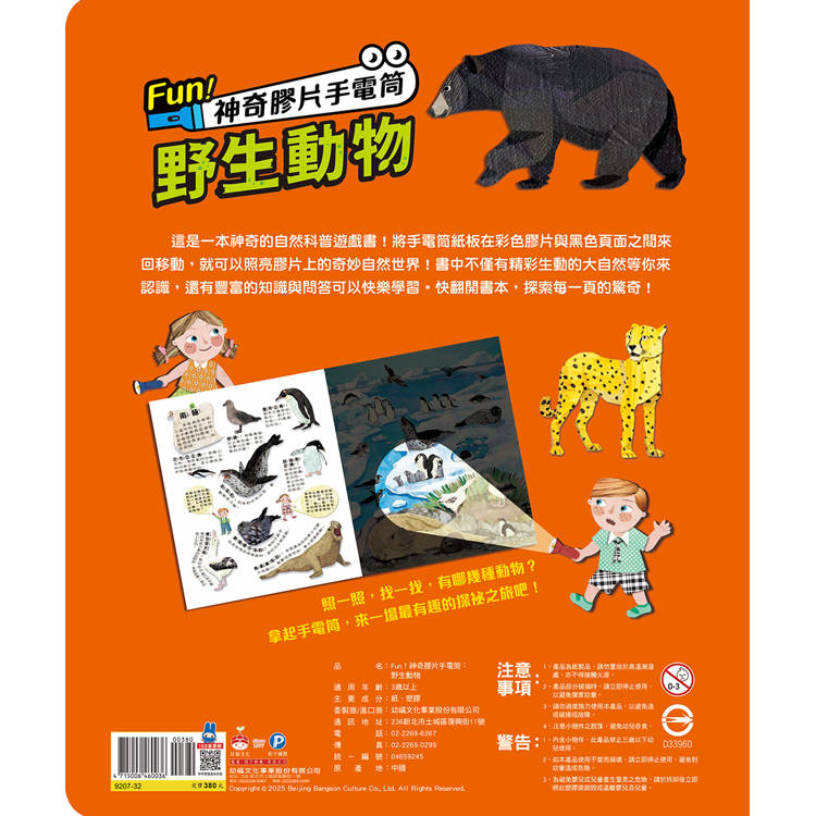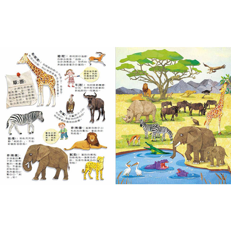 從草原到沙漠,從森林到溼地,這個世界上有各式各樣不同的環境,住了許許多多的野生動物,在書中全都找得到!不僅有精彩生動的大自然等你來認識,還有豐富的知識與問答可以快樂學習。快翻開書本,探索每一頁的驚奇!