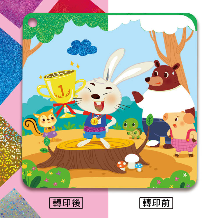 忍者兔閃亮色紙轉印貼童話遊戲書【北風與太陽&龜兔賽跑】