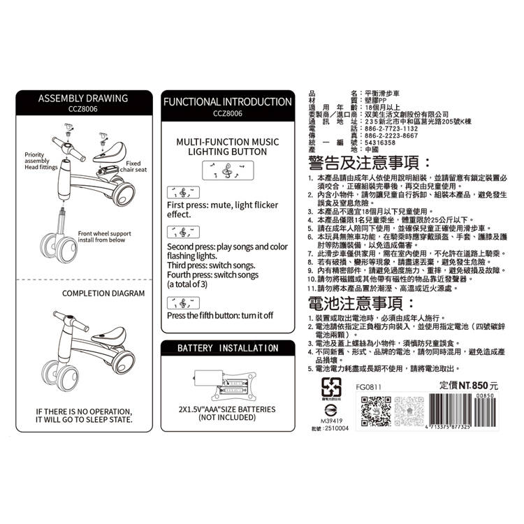 安全穩固防傾:選用安全圓潤材質、車身堅固輕巧。