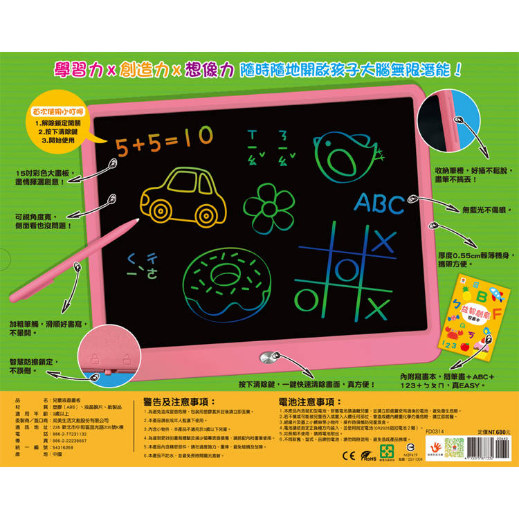 ★15吋彩色液晶畫板,盡情揮灑創意!