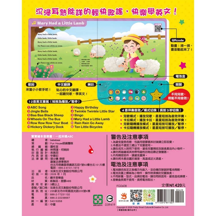 繪本收錄12首經典英文童謠及卡拉伴唱: