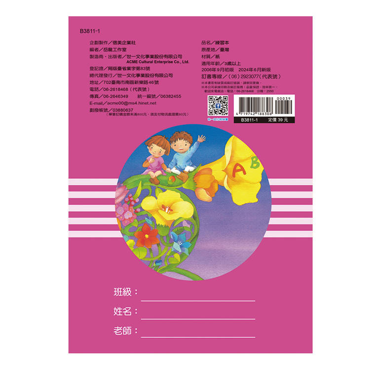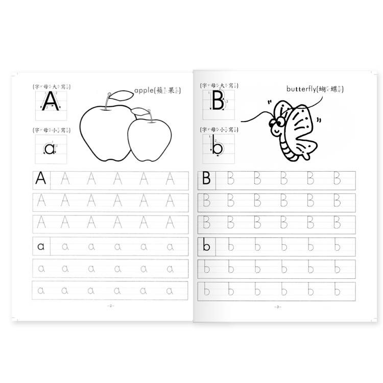 內容簡單,適合孩子學習,含字母筆順及字母大小寫練習格,只需依照虛線練寫,即可輕鬆學習英文字母。