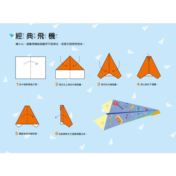 撕下即用,摺疊完成可愛的、帥氣的紙飛機作品就完成,不需要再動筆塗畫。