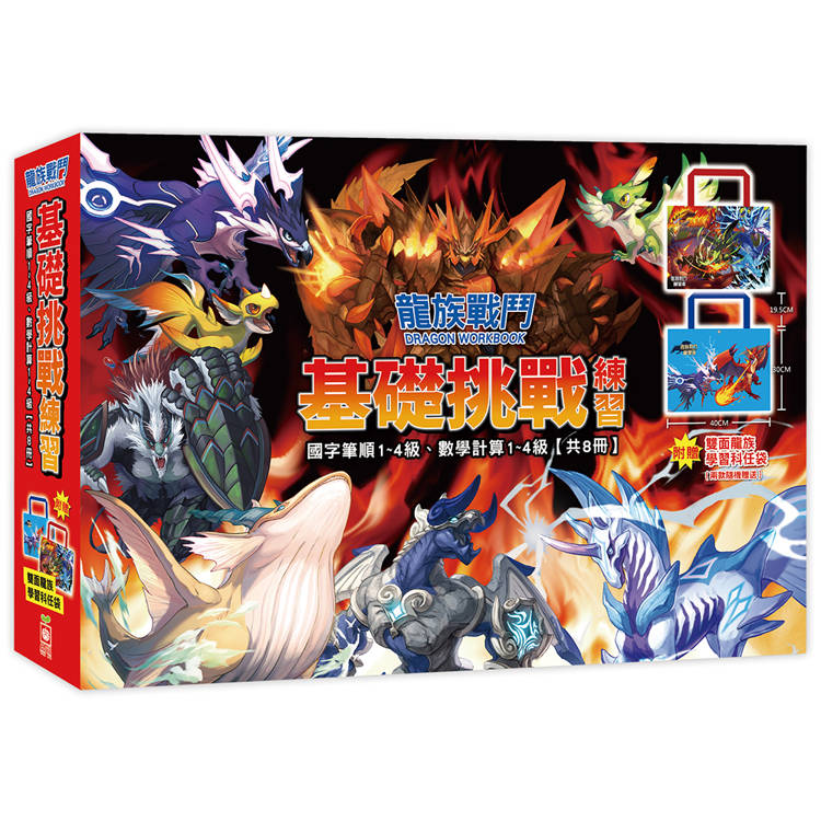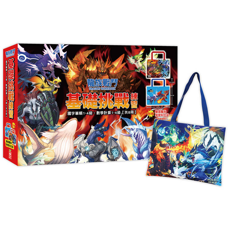 龍族戰鬥基礎挑戰練習【國字筆順1~4級、數學計算1~4級,共8冊】(附龍族學習科任袋、閃亮龍族召喚貼紙、超酷龍族角色墊板)