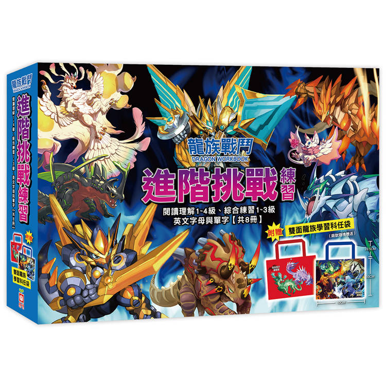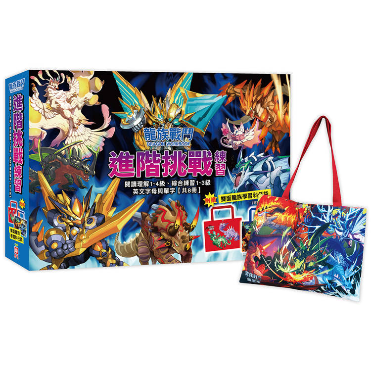 龍族戰鬥進階挑戰練習【閱讀理解1~4級、綜合練習1~3級、英文字母與單字,共8冊】(附龍族學習科任袋、閃亮龍族召喚貼紙、超酷龍族角色墊板)