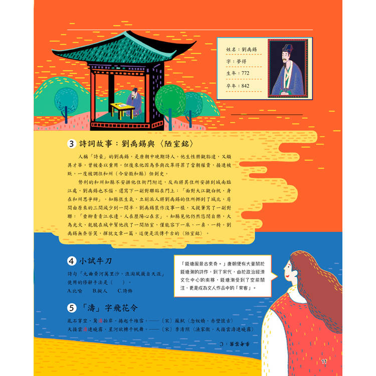 ◎詩詞故事:把詩人最被傳誦的經歷寫成故事,亦搭配詩人圖像照簡述個人基本資料。