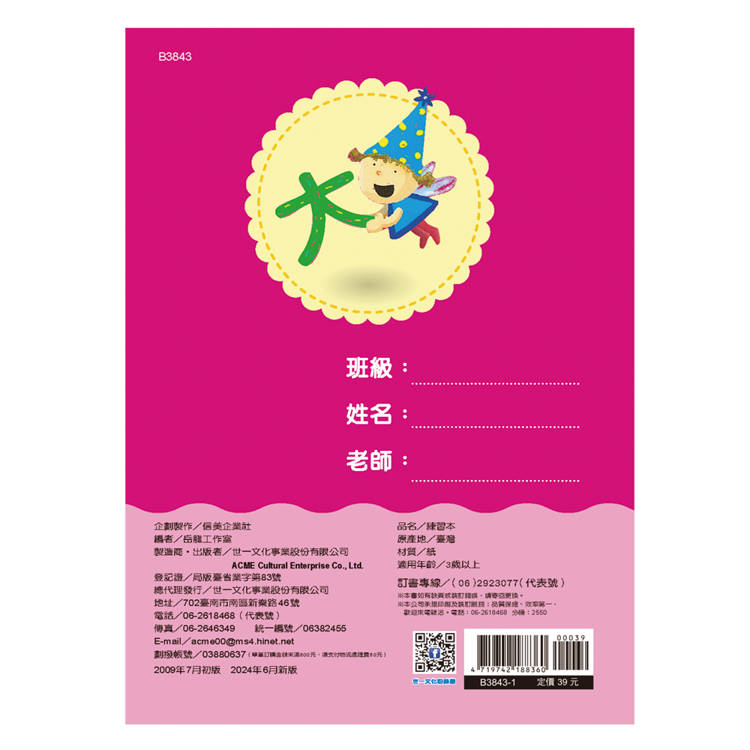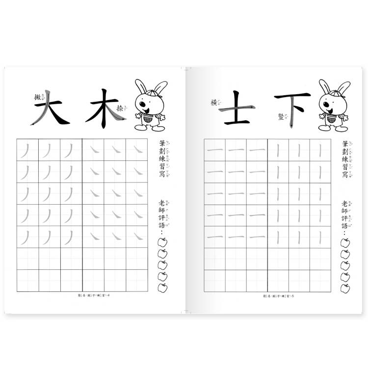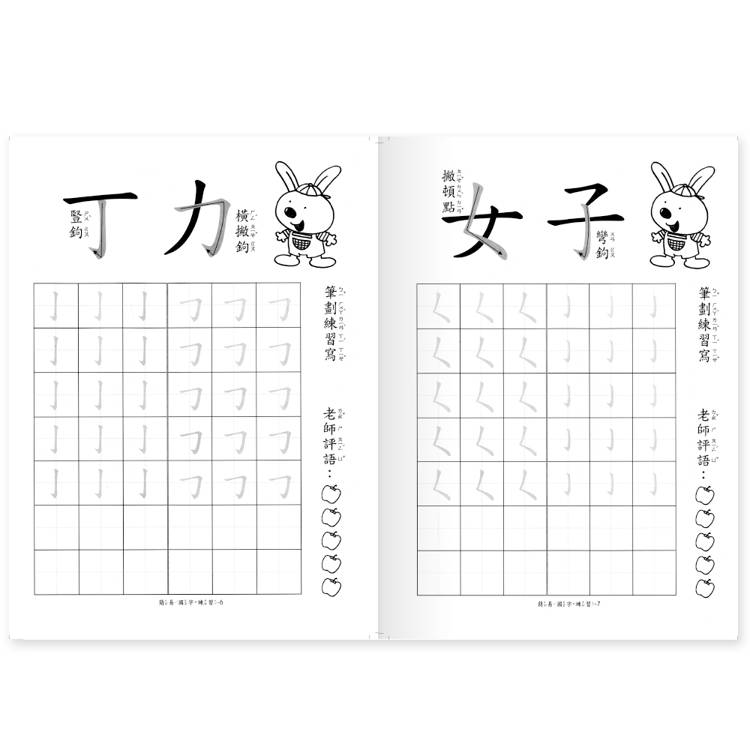 本書包含14個國字基本筆畫和21個國字筆順練習,選用國字形構簡單,適合小孩子初步習寫國字,並有國字相關詞語和相關圖片,增加孩子詞彙量。