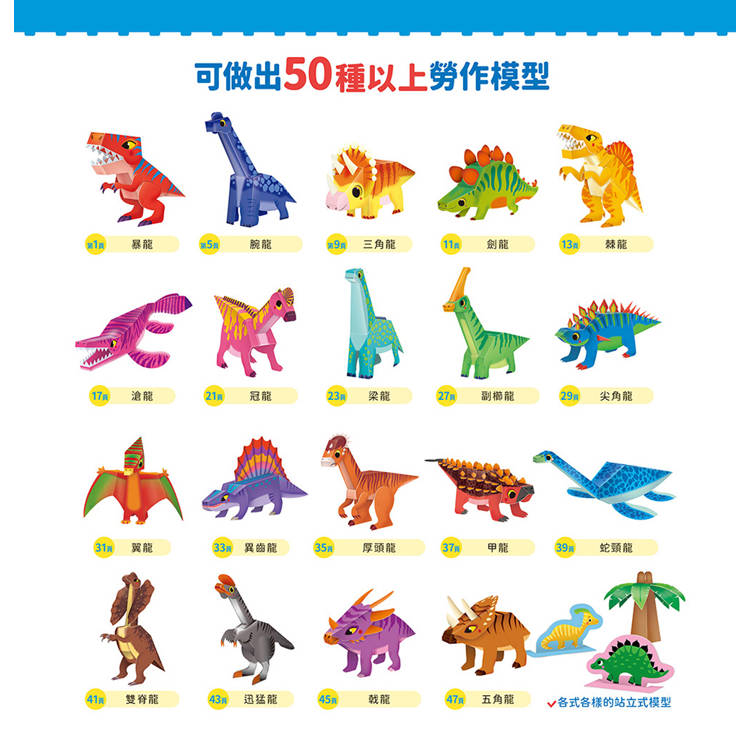 恐龍立體模型:不需剪刀,輕鬆做出50個紙模型勞作