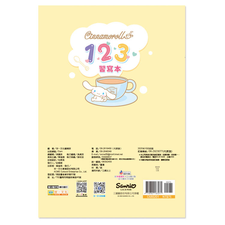 清晰標準的字體加上筆順,超卡哇伊的插圖,豐富多元的應用題目,讓這本練習本不只可愛而已!在大耳狗喜拿的陪伴下,輕鬆,快樂的學會123!