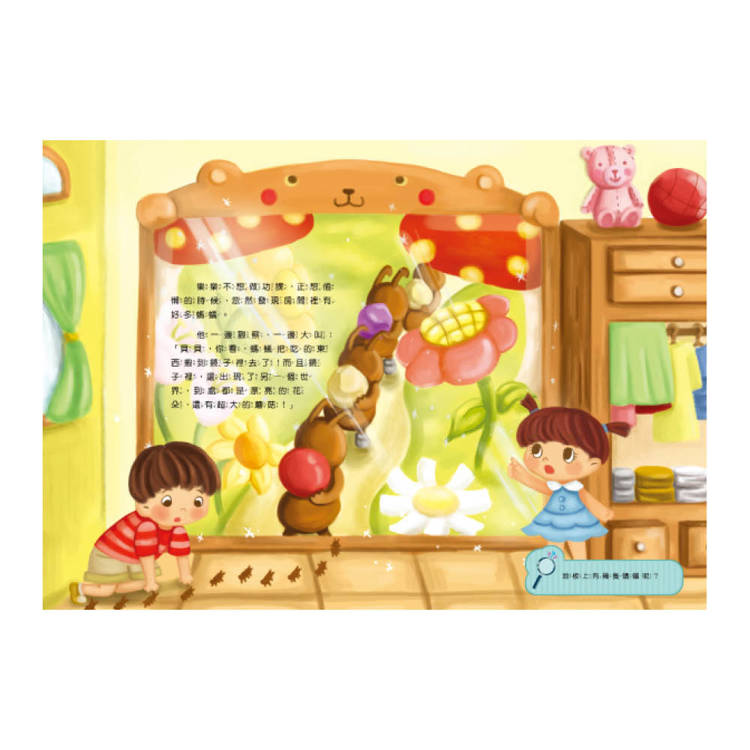 讀:為每本量身特別繪製風情各異的跨頁插畫,輔以注音文字故事陳述。並在畫面中隱藏有趣的「找找看」遊戲,刺激孩子的觀察力!