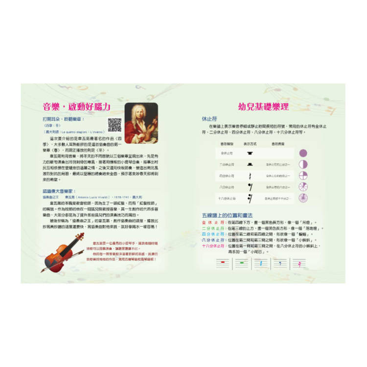 用音樂啟動好腦力 -- 搭配古典音樂豐富的旋律,快慢有序的節奏,刺激聽覺神經生長與發育。音樂故事劇場身歷其境的感受,滿足幼兒的全腦發展刺激,是陪伴孩子的最佳床邊音樂故事!