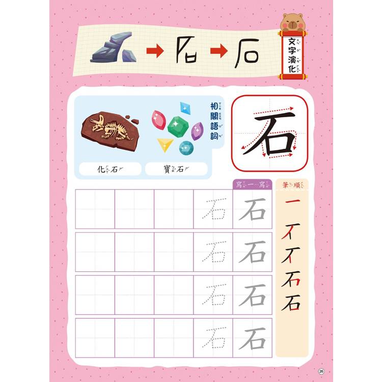 依據官方筆順設計,搭配清楚筆畫分解圖,建立正確書寫基礎。