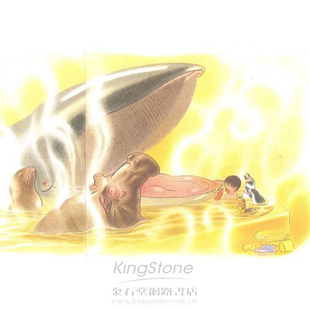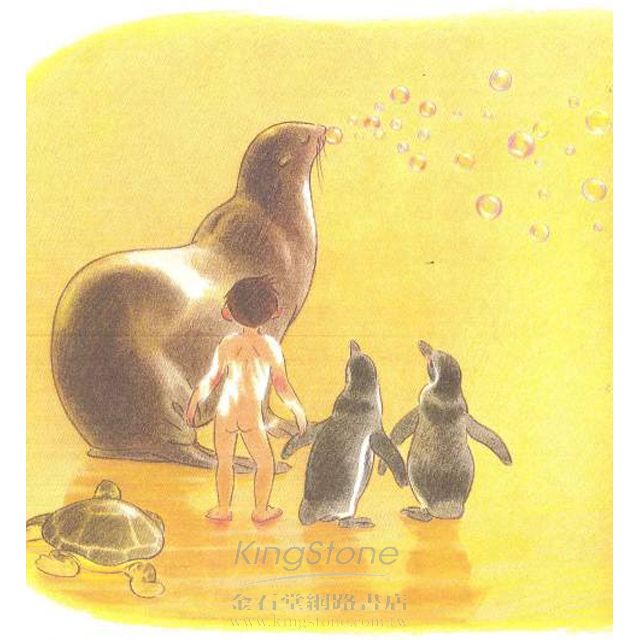 《我最喜歡洗澡》一書讓小小的浴缸展現出一個多彩多姿的想像世界:怕熱的大海龜、愛鬥嘴的企鵝雙胞胎、會吹泡泡的海狗、瞻小的河馬、噴雨如柱的大鯨魚,一一從浴缸冒出來——只有孩子會百分之百相信是真的。
