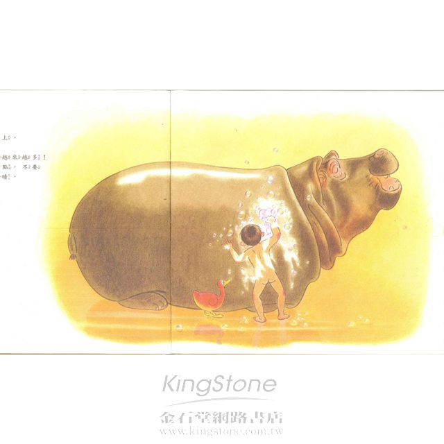 看完《我最喜歡洗澡》這本「三合一」(兼具創意性、藝術性、教育性)的好書,爸媽不妨為孩子添加一些洗澡時的玩具伙伴,或跟孩子在浴缸裡玩動物玩具「躲迷藏」的遊戲,或雙手在水裡做動作再衝出水面:「看看什麼動物出現了?」藉著各種延伸遊戲,讓這本書的想像國度進入洗澎澎的浴缸,成為孩子童年的另一個香格里拉!