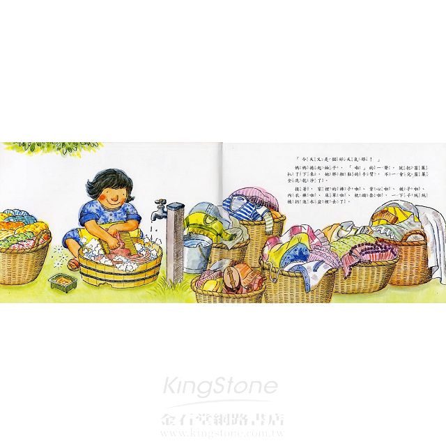 你喜歡洗衣服嗎?告訴你一件奇事,從前有一個很喜歡很喜歡洗衣服的媽媽,她愛洗衣服的程度實在驚人,她把家裡所有的東西全洗完了還嫌不夠,連貓、狗、小朋友、鞋子、雨傘……全都拿來洗。