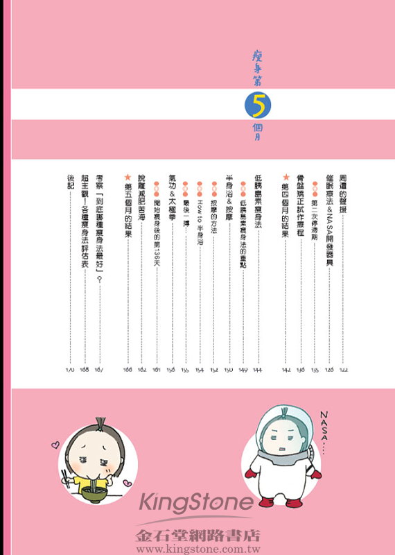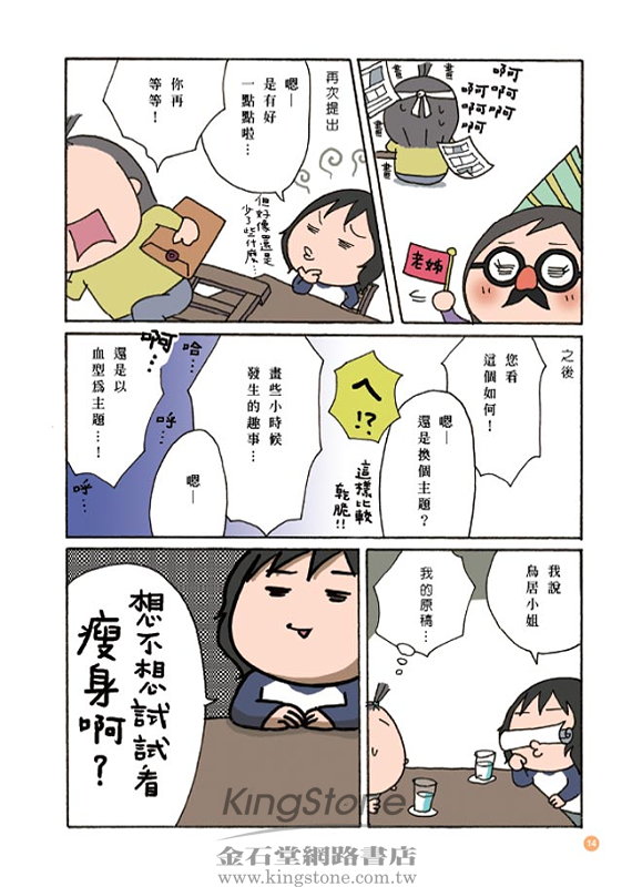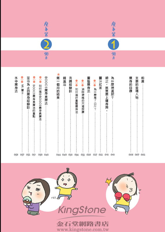 2008/08/11 部落客瘦身圖文書 真人實證貼近讀者心 坊間減肥書多如繁星,從減肥飲食、消脂按摩、瘦身健體到靜坐冥想無奇不有,其中多半是醫師或減肥中心出書,再不然就是明星代言,尤其挾著明星光環出版的美容瘦身書,幾乎更是暢銷保證,然而相對和一般民眾的距離比較遠、專業有餘但親切不足,但近日有兩本非常有趣、集結自網路部落客的親身減肥奮門記,透過搞笑的文字及輕鬆的圖畫,對一心想瘦身的讀者來說,真材實料的故事內容更具說服力。 《請你跟我這樣瘦!》(時周文化)作者大熊部落格原本在網路上就很受歡迎,4月份透過電子媒體報導後,更是突然間爆紅,部落格每天湧進數十萬人次點閱。他的「失戀胖子立志減肥」故事雖然有媒體炒作加持,但重點還是他積極和網友分享的心得,真人實證的故事,沒有麻煩的步驟,有的只是他自己真正下廚研究的食譜和長年吃外食的心得,把減肥道理(熱量的原理)用淺顯搞笑的文字分享出來,讓真正想減肥的人看門道,而只想輕鬆閱讀的人也可以看熱鬧,因此被接受度很高,所以即使8月15日才正式推出,但目前在網路預購排行榜名列前矛。 而在日本羅列最受歡迎前三大圖文部落格的鳥居志帆,是個愛在部落格上畫畫的女生,有一天,出版社編輯找她出書,可是給她的新書企劃題目竟然是「5個月內,瘦7公斤」,但從小就超愛吃美食的她,曾嘗試N次減肥也從來沒有成功過,但在編輯的鞭策下,她親身嘗試了骨盤矯正、洗腸、熱瑜伽催眠療法等瘦身方法,這歷時五個月的血汗故事,透過詼諧的圖文完整呈現在《有人叫我瘦7公斤!》(大田)一書中,自7月底出版以來,已有許多讀者表示內容十分好笑,也因為這本書找到自我的減肥方式,一邊看圖文開心解憂,一邊感覺自己有機會達到理想的身材。 正在苦惱該如何減肥的你,不妨看看這兩本貼近讀者的真人實證瘦身圖文書,實用逗趣的內容,不僅讓你跟著故事情節開懷大笑,更能產生「我也是耶」「沒錯就是這樣」的共鳴,進而衍生出「我也可以像他一樣瘦下來」的減肥決心。 *文中照片由大田出版提供,出自《有人叫我瘦7公斤!》一書。