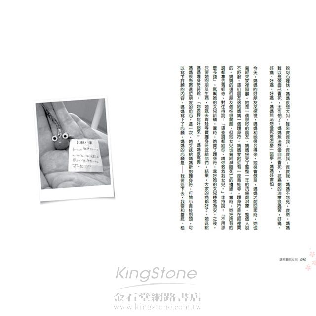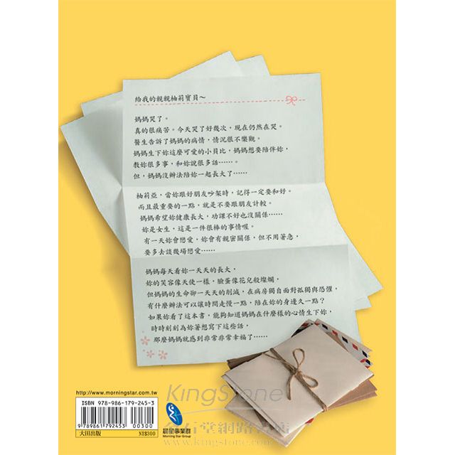 如果妳看了這本書,能夠知道媽媽在什麼樣的心情生下妳,時時刻刻為妳著想寫下這些話,