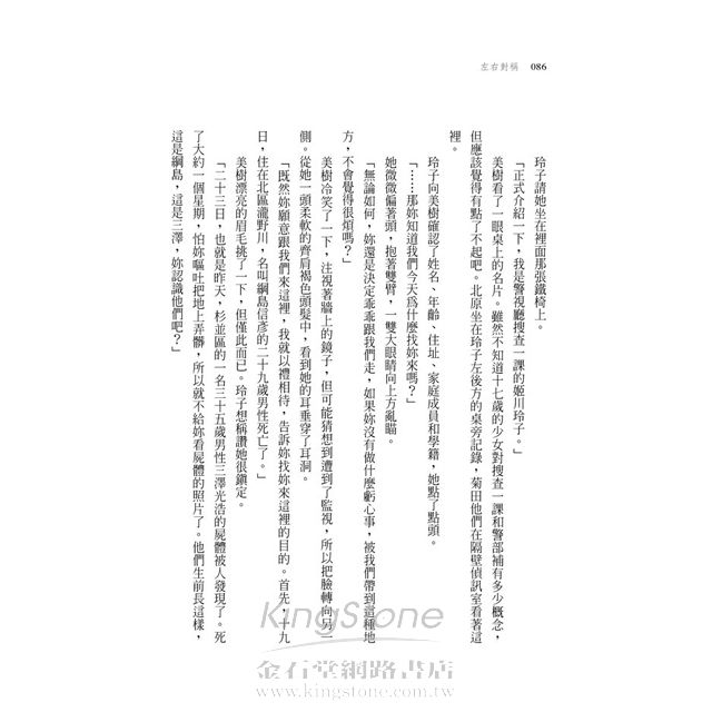 一個生嫩的刑警,如何透過偵查過程找到自己的定位與本色,這本書描寫的是這樣的探索與追尋的過程。──讀者 勇
