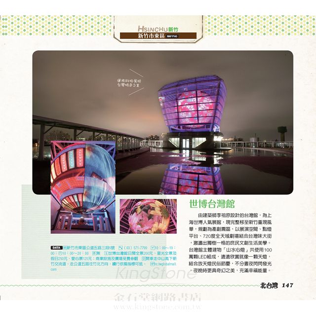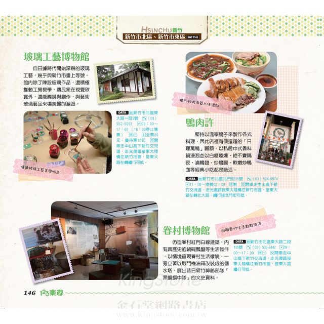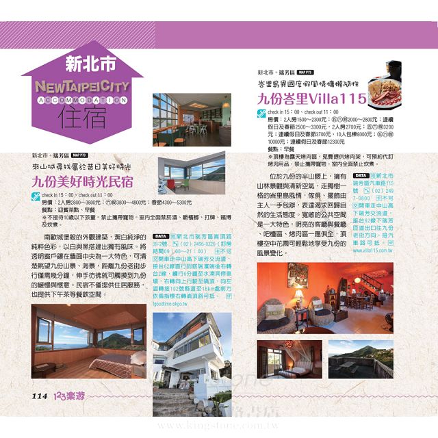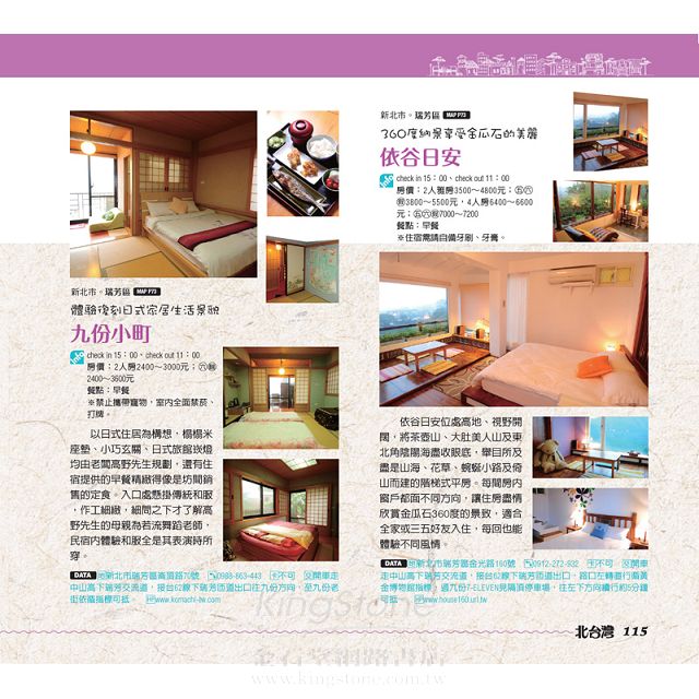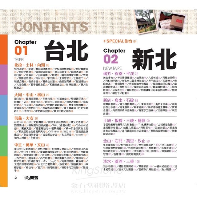 將旅遊景點+美食+住宿資訊等情報依地區分類,符合一般讀者習慣的閱讀方式,為讀者規劃1日遊、2天1夜的推薦行程,帶領讀者快樂暢北台灣。