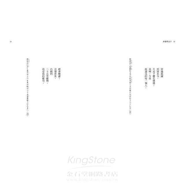 詩人陳黎與張芬齡以十年時間精心譯成。中日文對照。字字珠璣的短歌,如螢火般飛過萬古長夜,以美與哀愁的綠光,誘人不眠……
