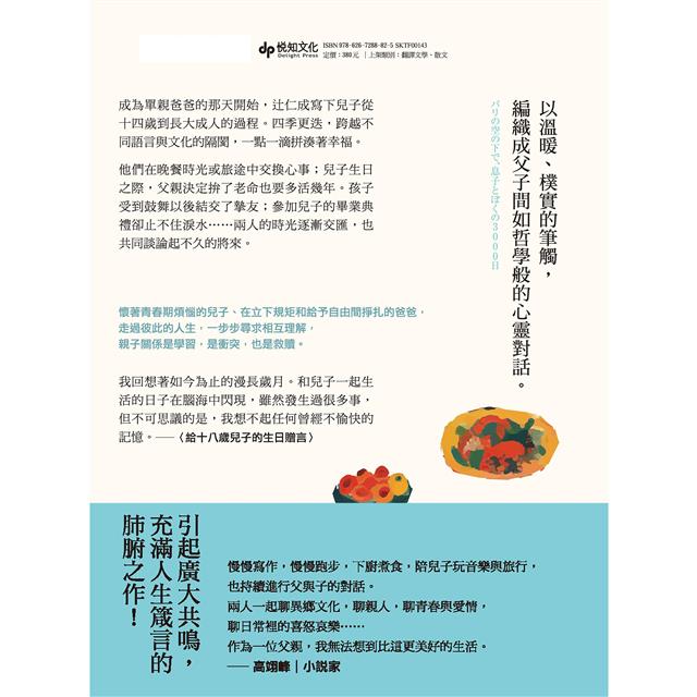 慢慢寫作,慢慢跑步,下廚煮食,陪兒子玩音樂與旅行,也持續進行父與子的對話。兩人一起聊異鄉文化,聊親人,聊青春與愛情,聊日常裡的喜怒哀樂……作為一位父親,我無法想到比這更美好的生活。──高翊峰|小說家