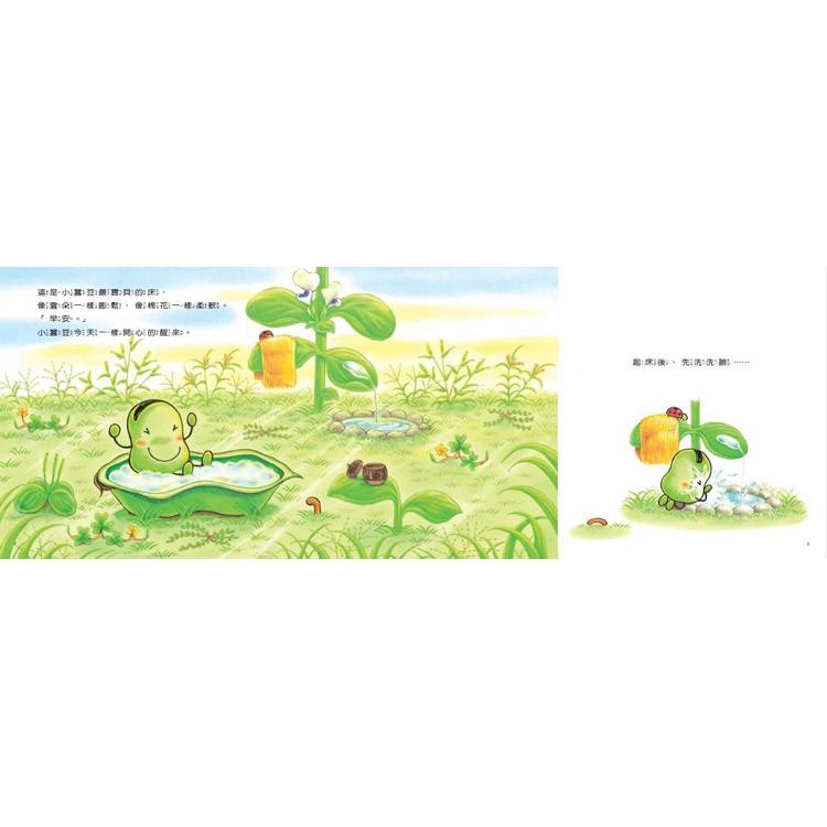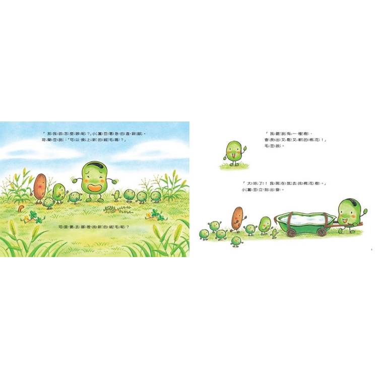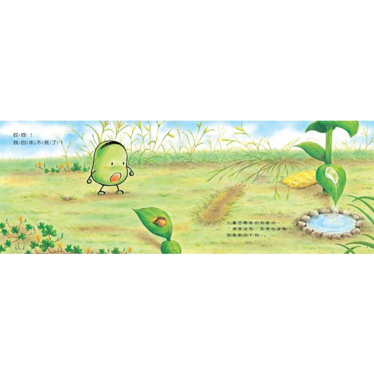 毛豆來找小蠶豆,說: 「小蠶豆,你的床可以讓我睡睡看嗎?」