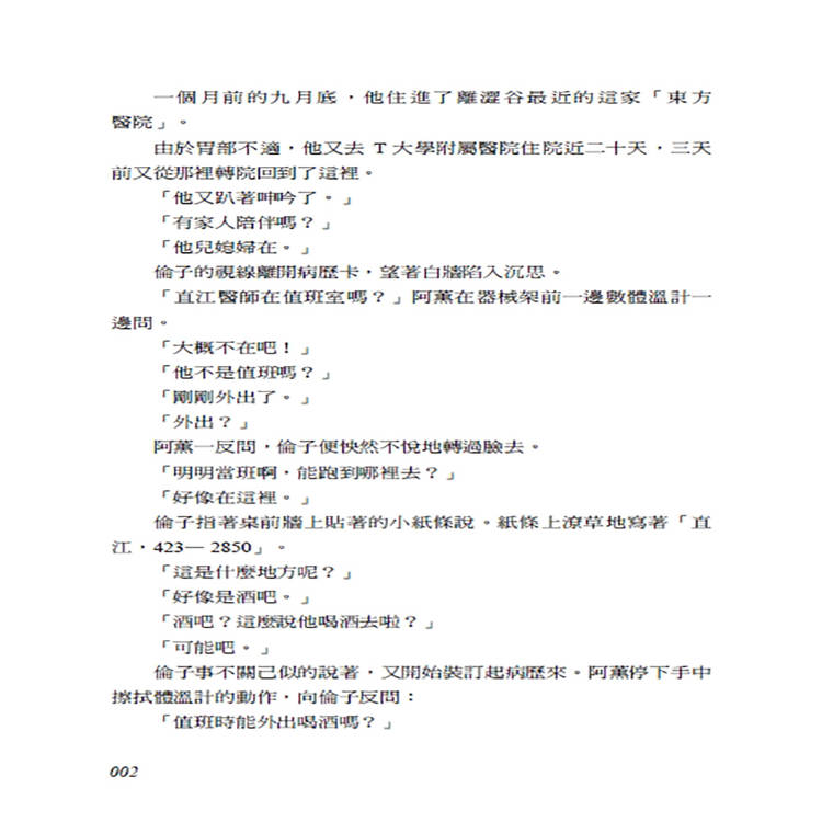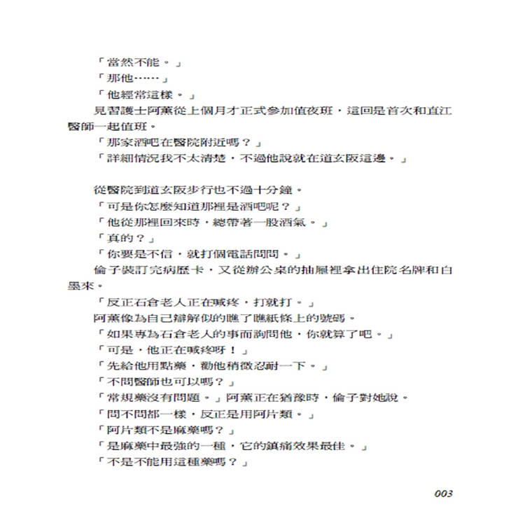 故事發生在日本東京一家私立醫院,著名醫學院的年輕講師直江庸介是一位成就突出的外科醫生,不知為何突然辭去大學里的工作,到一家私立醫院就職。冷峻的外表和高超的技術很快使他贏得了醫院中許多女性的垂青。女護士志村倫子更是對他一往情深,然而,隨著倫子與直江交往的加深,許多迷惑與疑問也相繼而生……