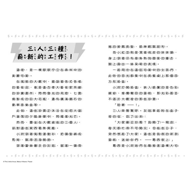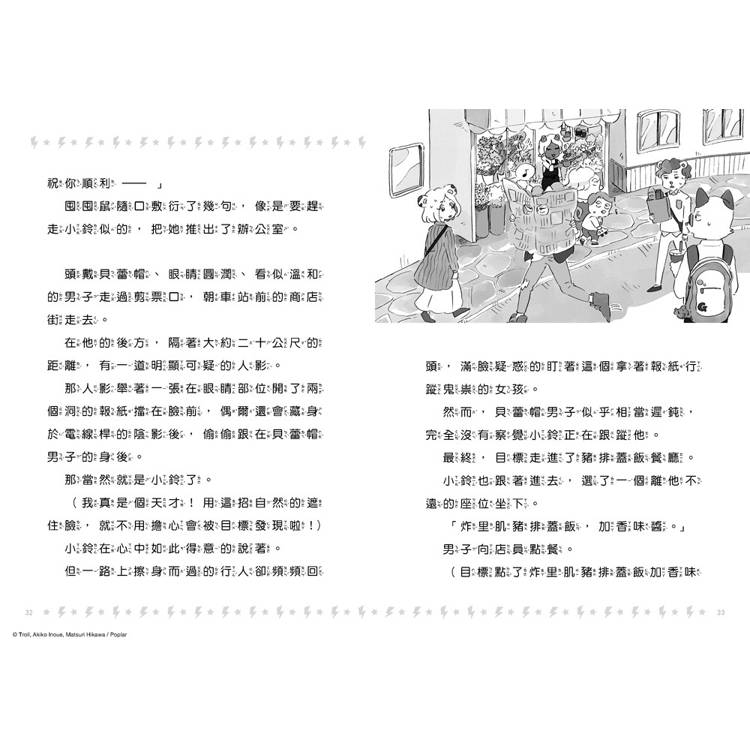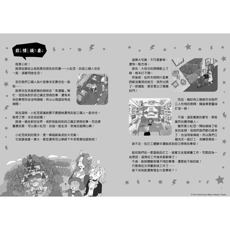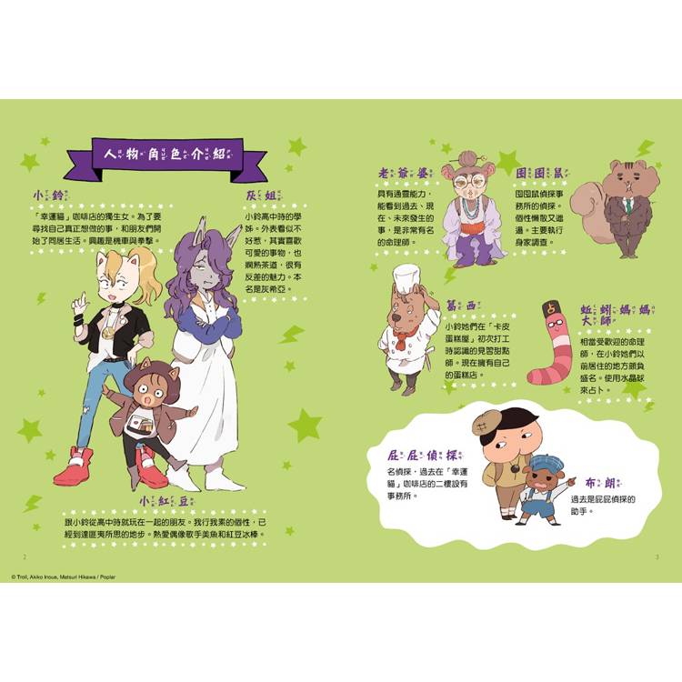 ◎由【屁屁偵探系列】作者Troll與優秀的編劇、插畫家全新打造的故事小說系列:主角是帥氣的貓小鈴(「幸運貓」咖啡店店長的獨生女)以及她的兩位好友小紅豆和灰姐;形式是以小學中、高年級為核心讀者的圖文小說,內文加注音。