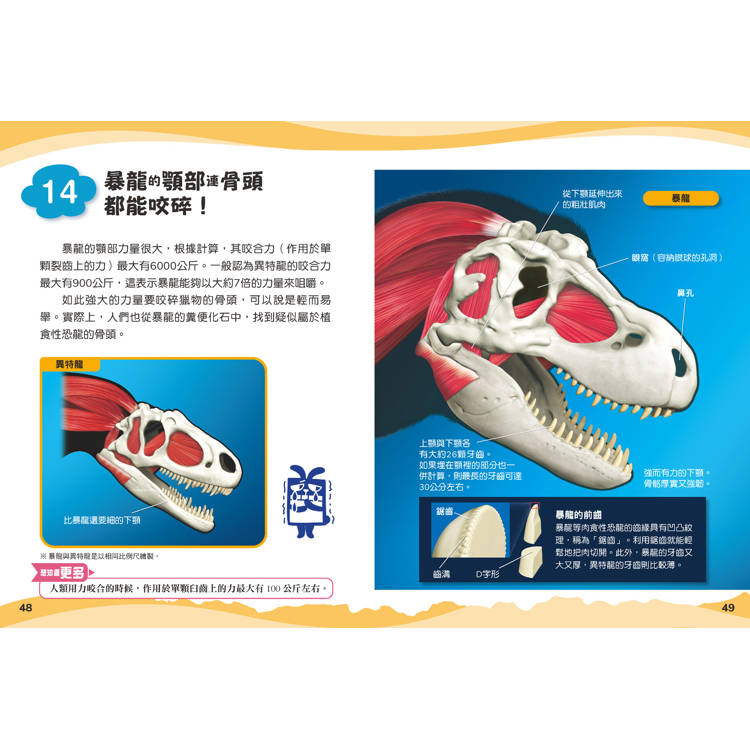 除了經典恐龍圖鑑,也介紹同時代的翼龍、蛇頸龍、滄龍等,並揭開恐龍滅絕的謎團。最後更收錄最新研究成果,如恐龍與鳥類的關聯、化石揭示的體色,讓大小讀者都能在探索中獲得驚喜。這不僅是給孩子的恐龍入門書,也能帶領大人重新認識古代巨獸。