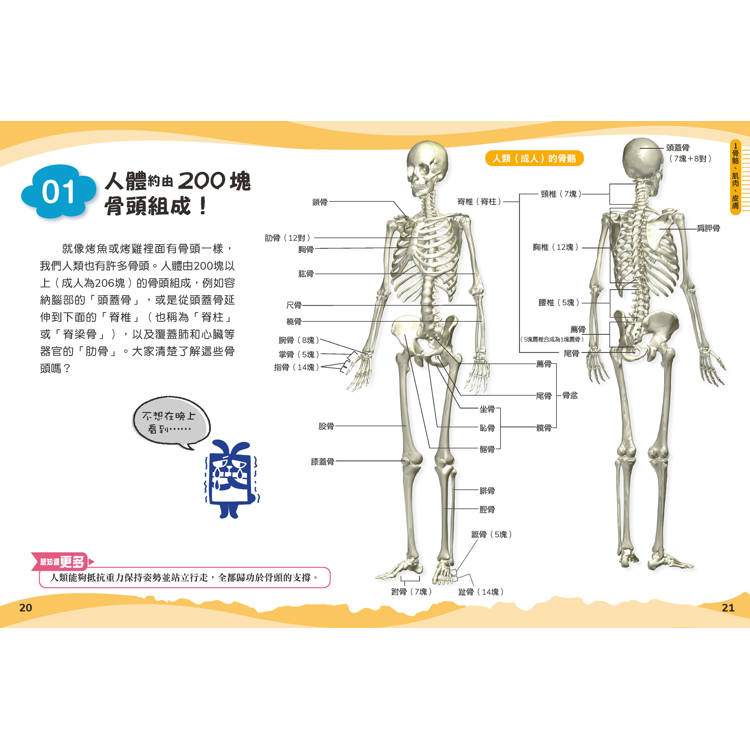 本書以6堂課帶你探索人體奧祕:骨骼、肌肉與皮膚如何支撐身體;血液與免疫系統如何守護健康;消化系統如何將食物轉化為能量;大腦與感官如何指揮我們的行動與感受;以及男女身體的不同構造。