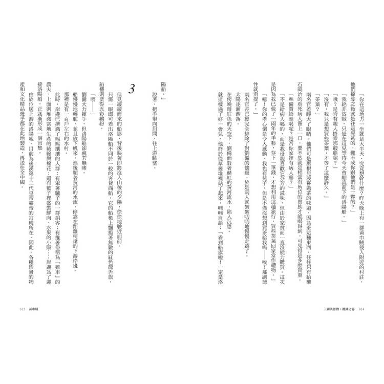 也因此,我不是簡譯或抄述,而是嘗試把它寫成適於撰寫的報紙長篇連載小說。除了劉備、曹操、關羽和張飛之外,對其他主要人物的描繪,都揉入了筆者個人的詮釋角度和創意,字裡行間隨處可見原著中所沒有的辭句、對話,這些都是我寫這本書的著力重點。