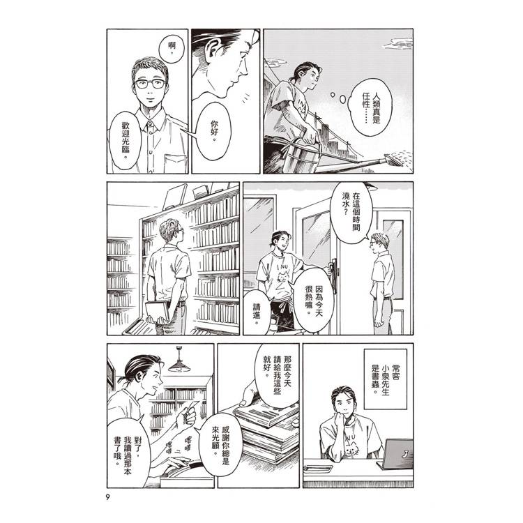 這是少見能讓愛書人感到被理解的漫畫。古書店作為場域,產生了「時間感」與「承接」的氛圍。書的保存、被放棄、被購買、再次被閱讀。於此中,時間、遺留、流轉的感覺被觸及。最後留在心裡的,不只是書的內容,還有那個「仍熱愛閱讀的自己」。