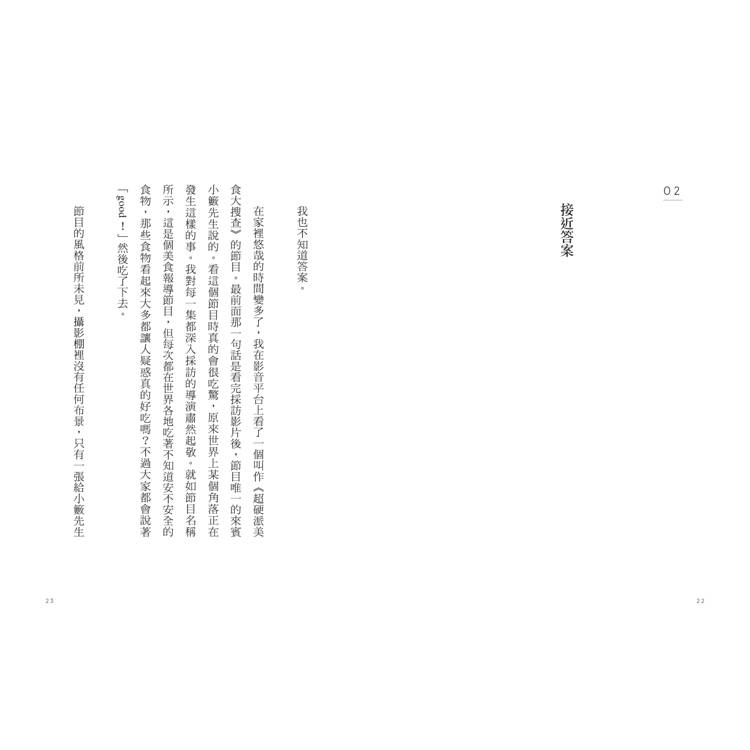 連載兩年的專欄文章,像是在瀏覽森川葵的私人社群帳號。她每個月寫一篇近兩千字的內容,即時地記錄了「我現在的生活」、「我現在的價值觀」。除了會看到參與日本綜藝節目《真假驗證中》,成為「宇智波葵」的心情,也會看到這位奇妙女子在下班後的生活。她有不為人知的沐浴習慣、有從小到大都不擅長的弱點技能、有參與教育類綜藝節目、有看過《超硬派美食大搜查》、有過一段漆黑時期是活在深不見底的心靈黑洞、有領養兩隻貓、有一個長得像米倉涼子的媽媽......。