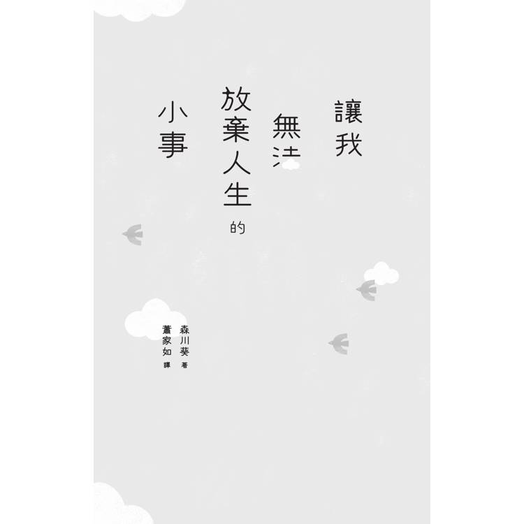 人生這個詞伴隨著我們每一個人,直到死亡才會結束。不對,我不瞭解死後的世界,說不定人死掉後,人生還會繼續。靈魂或許會轉世重生,再次來到這個世上,就算不轉世也可能會在某個我們所不知道的地方繼續下去......不過我得說一聲,我是在日本出生長大,只在有需要的時候才會雙手合十的無神論者。「人生」是每個人都必須要面對、無法置身事外的主題,所以我無論如何都想把它放進書名裡。加上「無法放棄」,則是因為我對人生中大部分的事物都沒辦法放下。