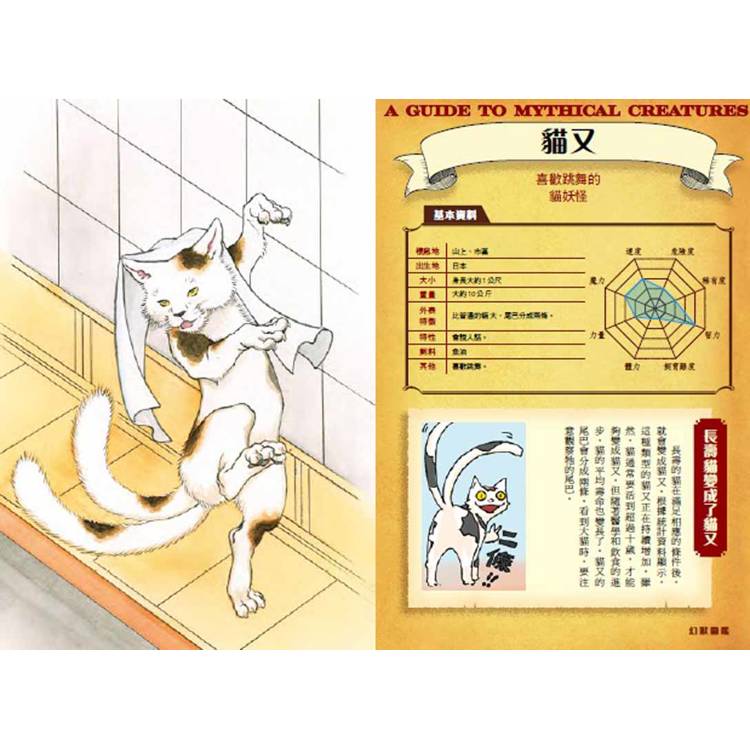 匯集天馬、河童、貓又、獨眼巨人等耳熟能詳的奇幻生物,並附上「幻獸圖鑑」,深入了解幻獸的特質與傳說。