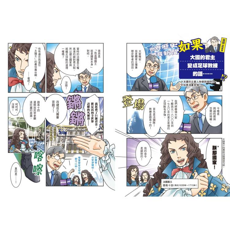 ˙「如果漫畫」:如果 大國的君主是足球教練的話……君主們以足球隊組隊前來,由體育主播兼歷史學者的羽田進行訪問。