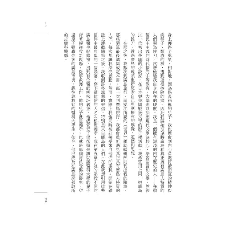 一九六四年底,我進行了一趟從開始書寫這份札記以來最短的廣島之旅。我只在廣島待了幾個小時。然而,就像所有我前往廣島的旅行,這趟旅行也迫使我對人類的悲慘與尊嚴進行深切的反省。對我而言,所有到廣島的旅程始終都是如此。我之所以寫下這份札記,是為了記錄我在旅行後的自我反省。