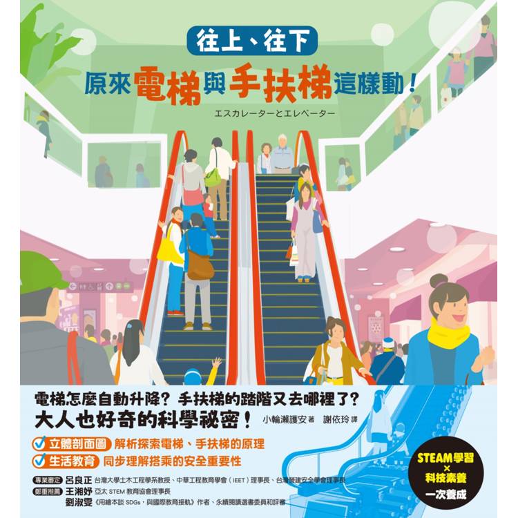 ★從喜愛的情境中學習STEAM:本書藉由孩子喜愛的百貨公司情境,帶領小讀者認識電梯運作的原理,也解開手扶梯的運轉之謎。