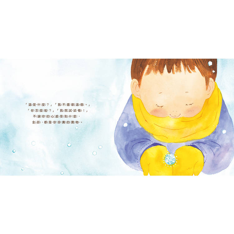 作者玉置永吉與畫家江頭路子,用最輕柔的水彩筆觸,為每一位孩子,寫下一封跨越時空的守護信。書中細數著孩子身上微小卻發光的瞬間:無憂無慮、像陽光般溫暖的笑容;眼睛閃閃發亮,迫不及待和你分享他的「大發現」;遇到開心的事藏不住,連小腳都蹦蹦跳跳的;討厭的心情、躍躍欲試的心情,全都是珍貴的寶物。