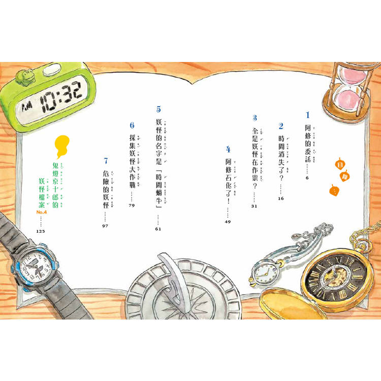 我和阿松對視了一眼,開始對京十郎丟出一個又一個問題:「那妖怪叫什麼?」、「是什麼樣的妖怪?」、「它會耍什麼手段?」、「它用什麼方法偷走時間?」