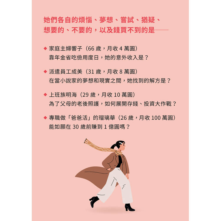 6名收入和背景、際遇都極度不同的女子,帶著各自的煩惱,努力找出適合自己、也符合收入的生活與理財方式。
