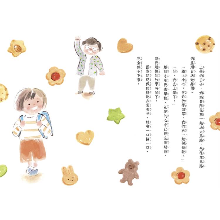 ★引發讀者共鳴的溫馨祖孫情:故事主角花花和奶奶的互動溫馨感人,搭配色調柔和的插畫,引起讀者的共鳴,讓人重新審視與長輩相處的點點滴滴。
