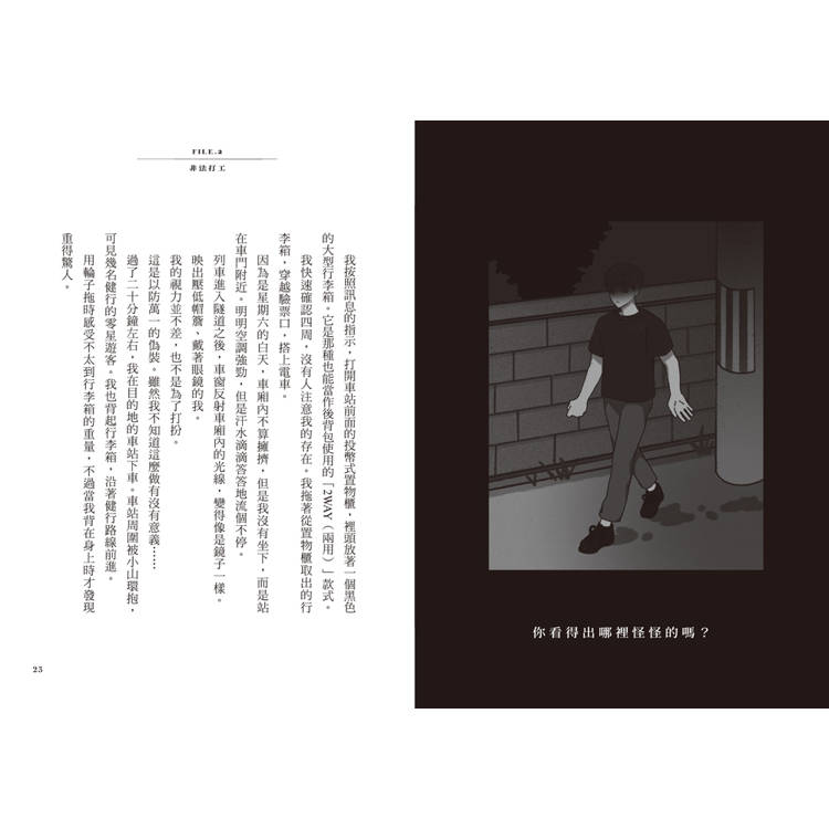 我當然沒有把這份新打工的事告訴同學。在學校時,我扮演著應聲蟲的「我」,面帶笑容地聽著大家聊旅行的事、最新遊戲的話題。我不能羨慕他們。