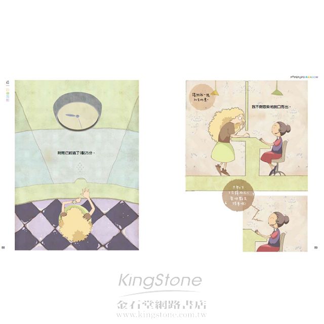 如果想讓所愛的人幸福,自己就得先幸福起來;若想要溫柔對待所愛的人,就要先善待自己。貝貝在下雨天的咖啡館等著寶寶,他把玻璃的霧氣擦掉,讓寶寶來的時候可以容易看見他。