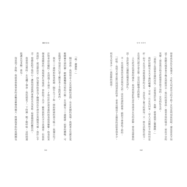 本書中,母親與她照顧的老人,女兒與她的伴侶,世代的差異在一個家庭裡交會,在碰撞中看見彼此的難題。即便各自的迷惘與恐懼持續如影隨形,仍嘗試向對方伸出手,一同等待理解的那一天到來。