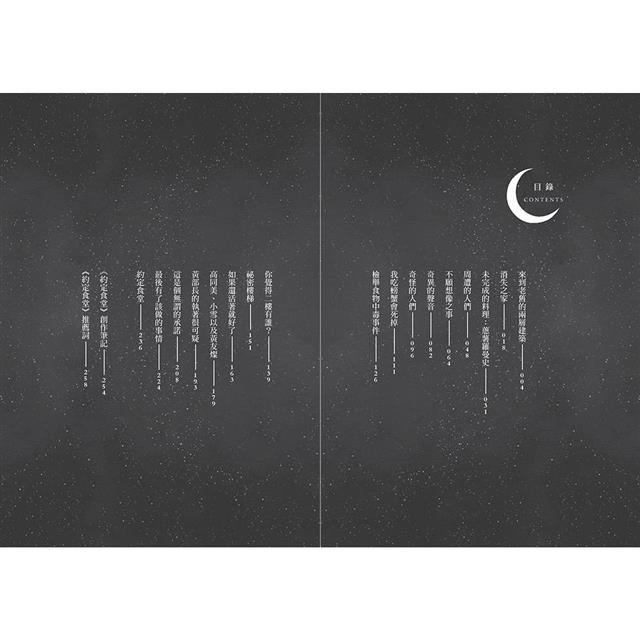 我走到外頭,發現餐廳沒有招牌。決定餐廳的名字並沒有花我太多時間。『約定食堂』我在紙上寫下約定食堂幾個字,並將它貼在玻璃門上。我反覆咀嚼著「約定」這個詞,感到有些哽咽。