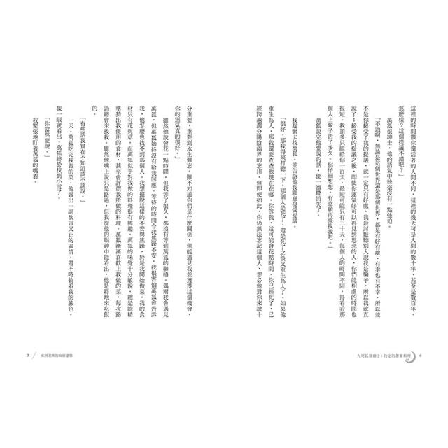 寫《九尾狐餐廳2:約定的蔥薯料理》的時候我很苦惱。苦惱要不要描寫一顆迫切渴望的心感動了天,來一場命運般的重逢。想必這樣能為活在當下,卻期待著未來的人們帶來一些安慰。我一直有這樣的想法。但最後我還是決定,與其寄託未知的來世,不如把握手中的現在、把握眼前可見的當下,才是最好的選擇。